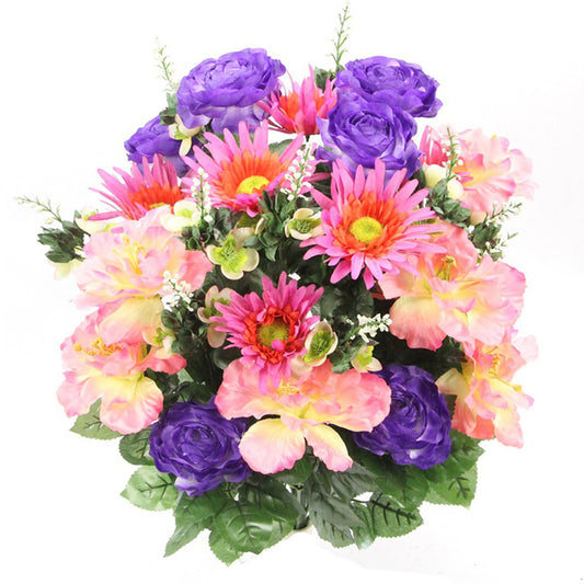 ABN1B014-PUR-ORCHID Artificial Spring Mixed Flower 30 Stem Hibiscus/ Rose Mixed Bush