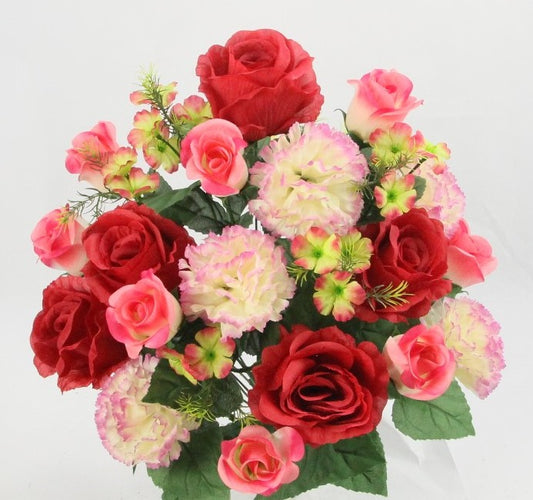 ABN1B018-Artificial Spring Flower Bush 24 Stem Rose/ Carnation Mixed Bush