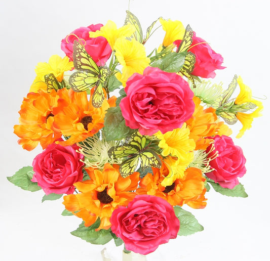 ABN1B019- Artificial Spring Flower Bush 24 Stem Open Rose/ Cosmos Daisy Mix Bush,