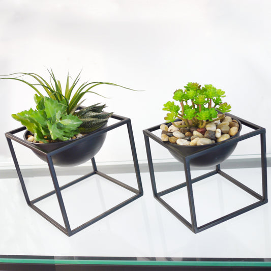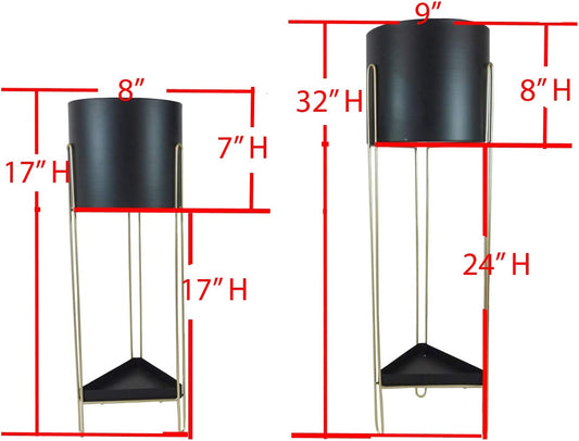 Set of 2 2 sizes Modern Black Planter Pot Flower Plants Holder