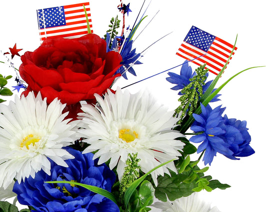 18 Stems Artificial Flower Patriotic Memorial Bouquet Peony Gerbera Daisy