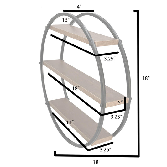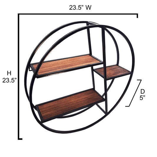 23" Mounted Iron Circle Hanging Storage Shelving Floating Shelf 3 Tier