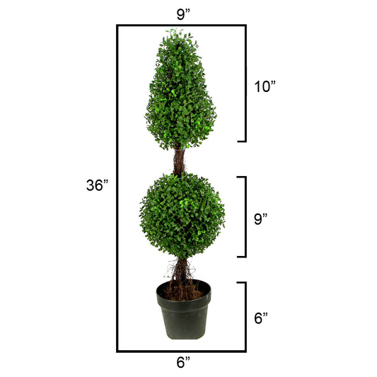 38" Artificial Boxwood Leave Double Ball Shaped Topiary Plant Tree in Plastic Pot ABNT005B-NTRL