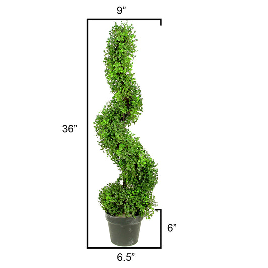 3' Artificial Boxwood Leave Spiral Topiary Plant Tree, GTR4633-NATURAL