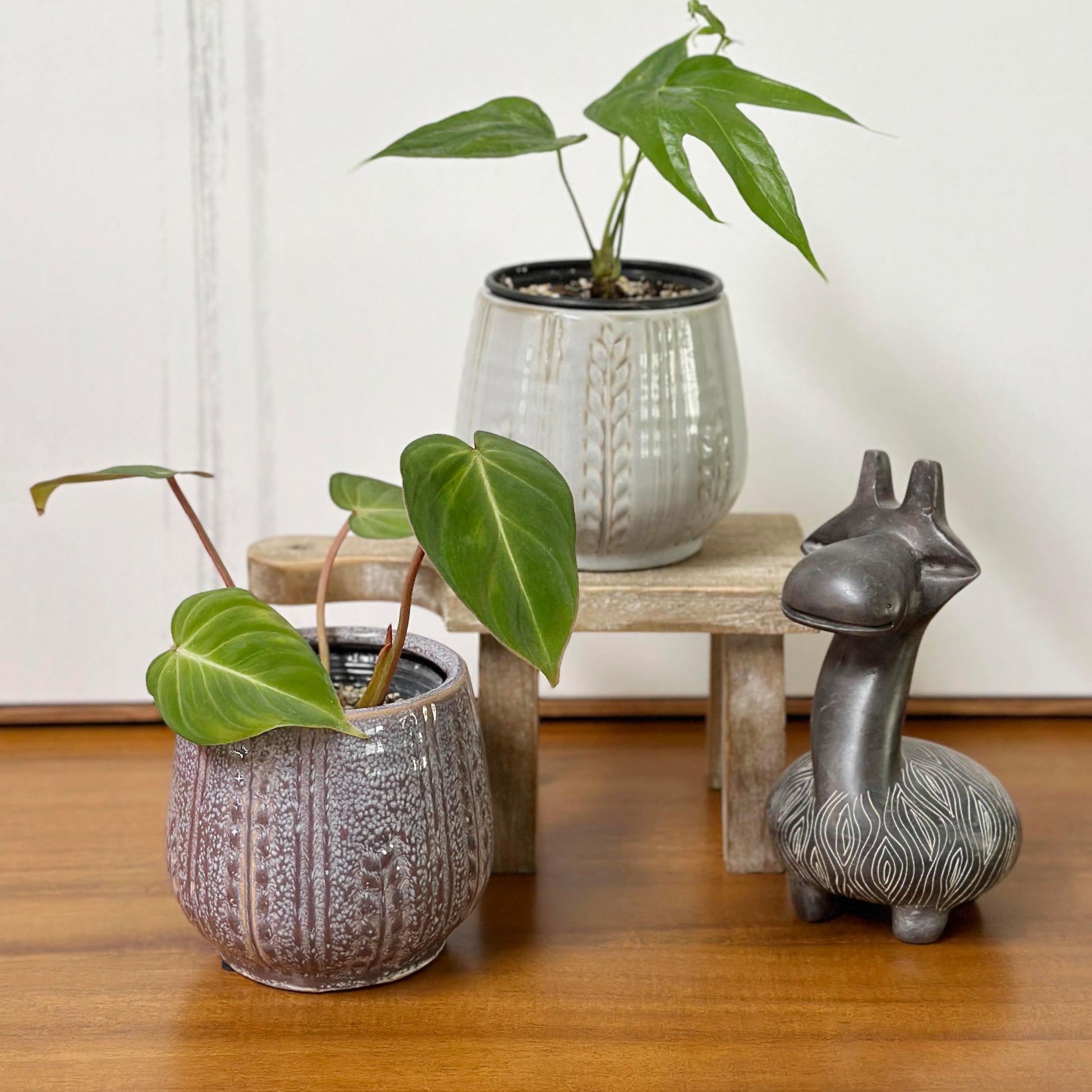 [Durable] Use Lavender leaf design 4.5" ceramic pot planters indoor or outdoor. They are beautiful along with being durable, keeping your flowers and plants safe from harm. No drainage hole on this planter.