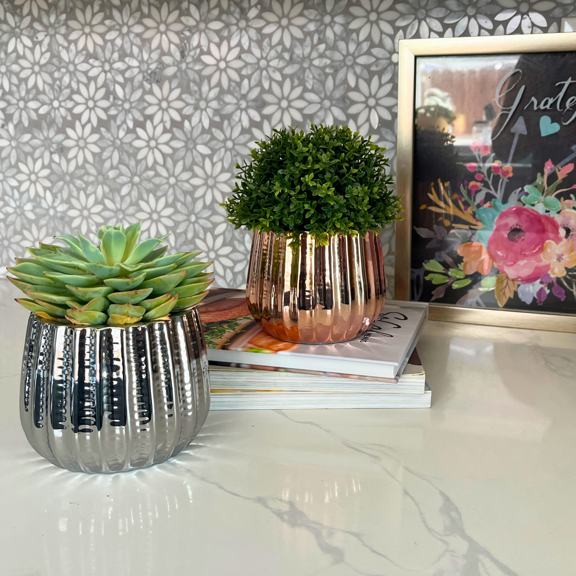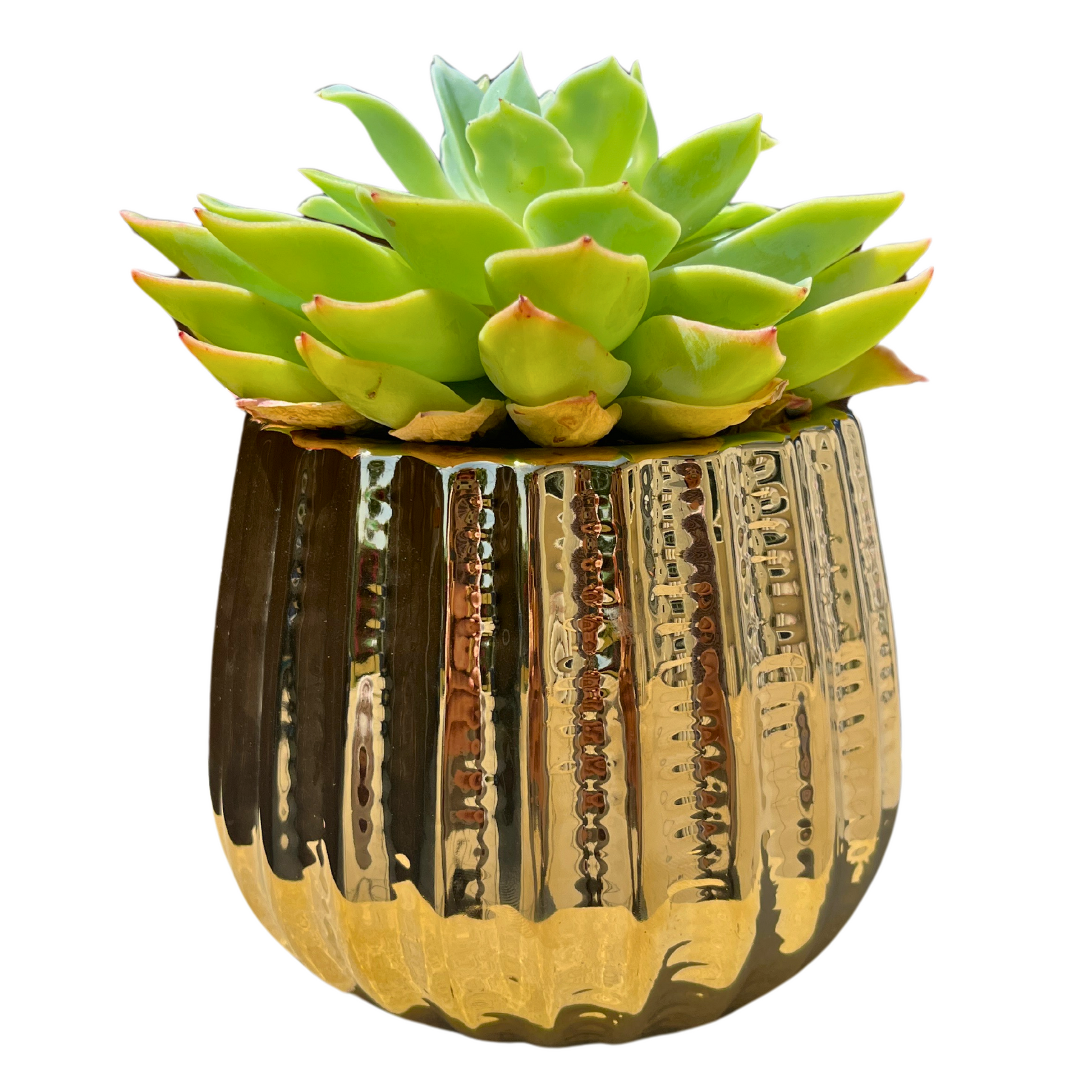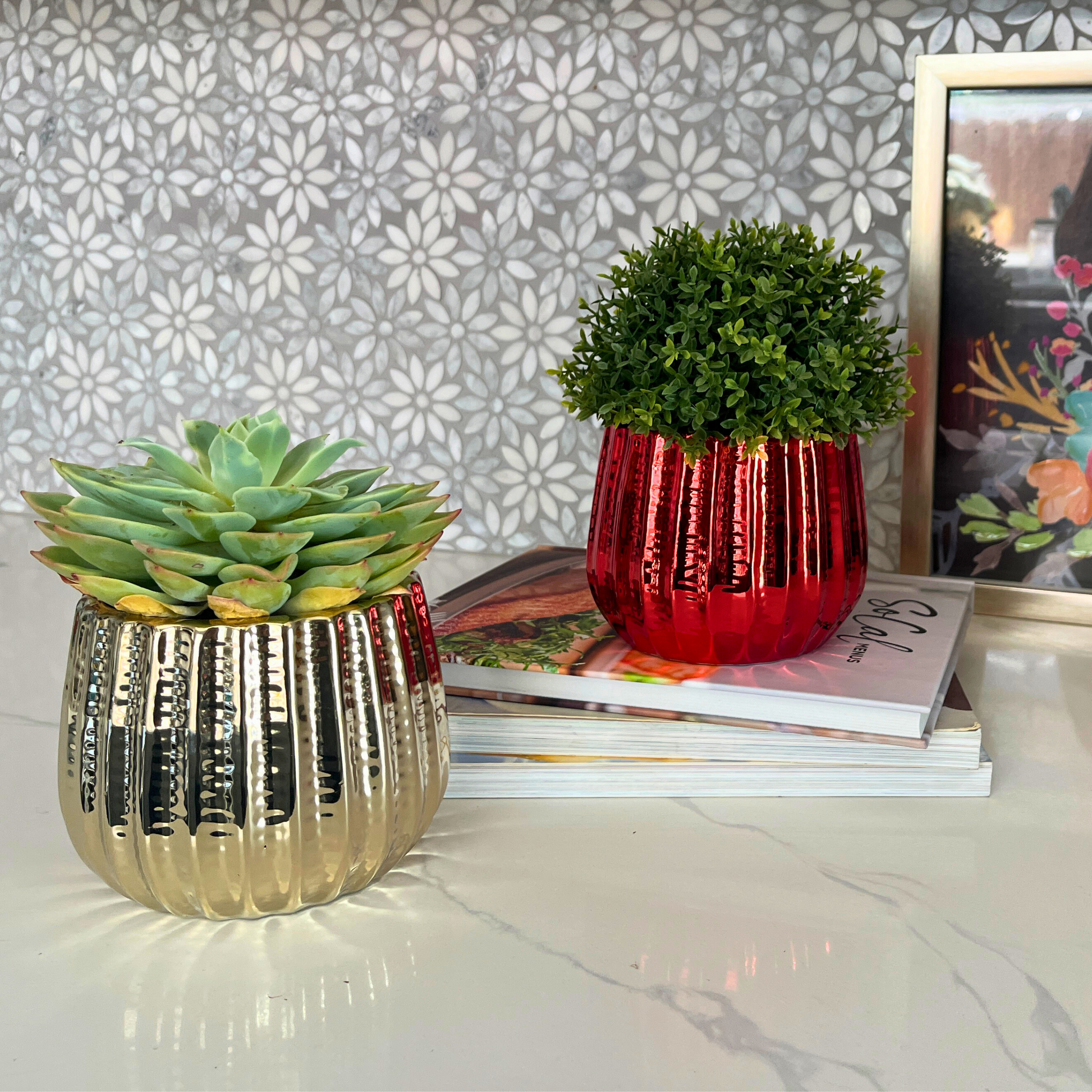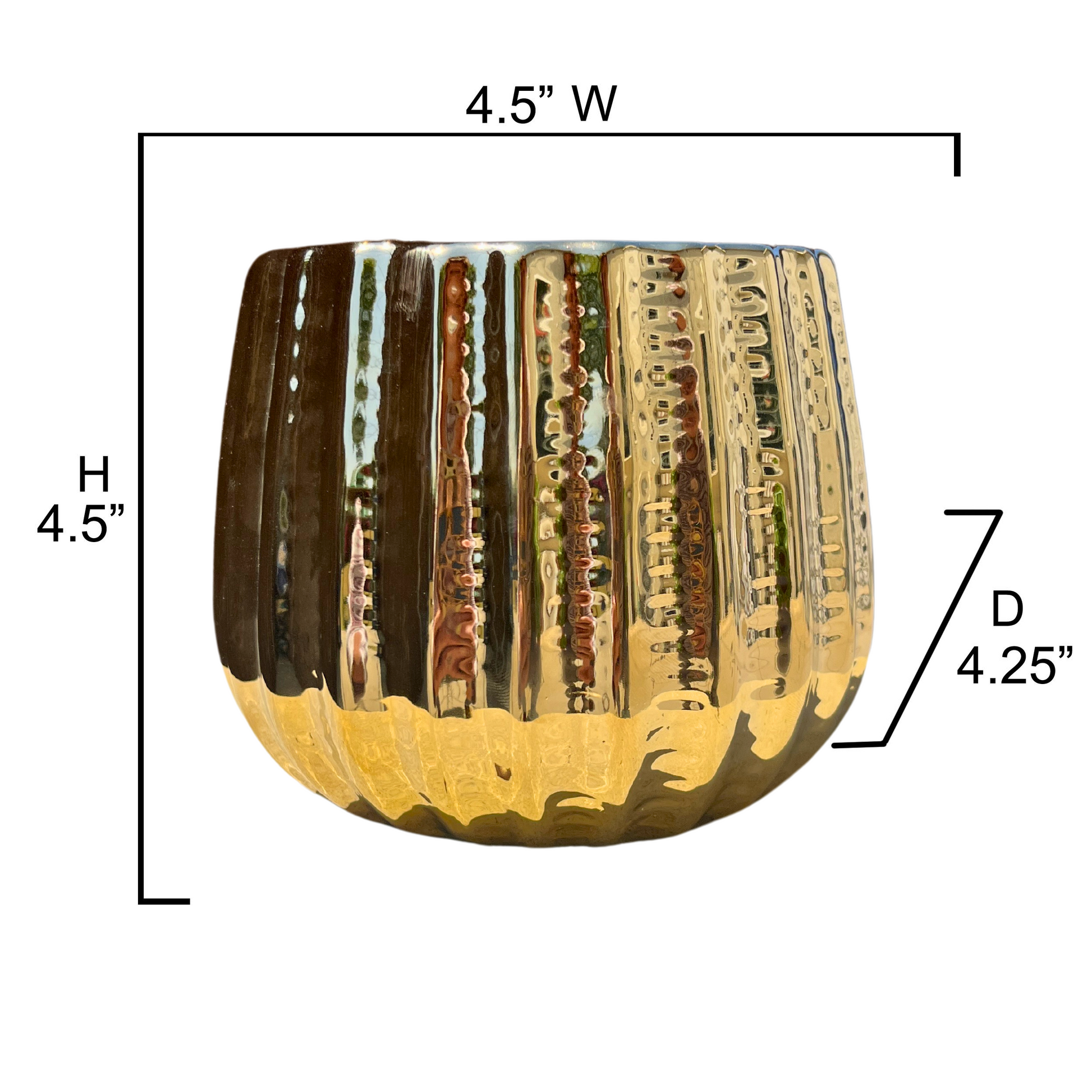 - [Durable] Use gold glossy finished 4" ceramic pot planters indoor or outdoor. They are beautiful along with being durable, keeping your flowers and plants safe from harm. No drainage hole on this planter.