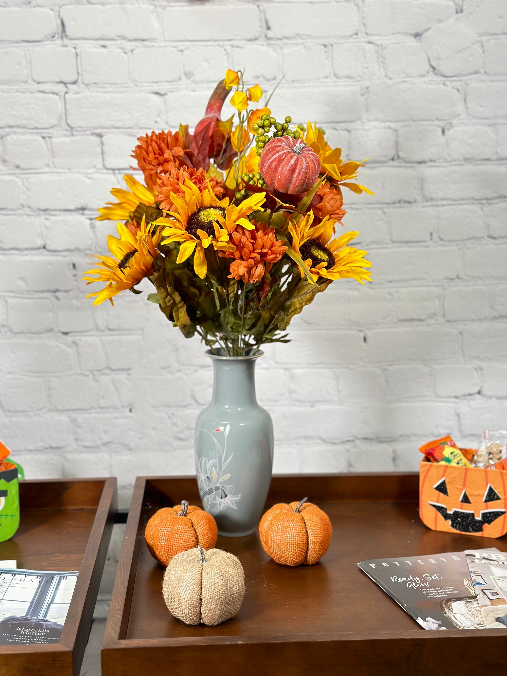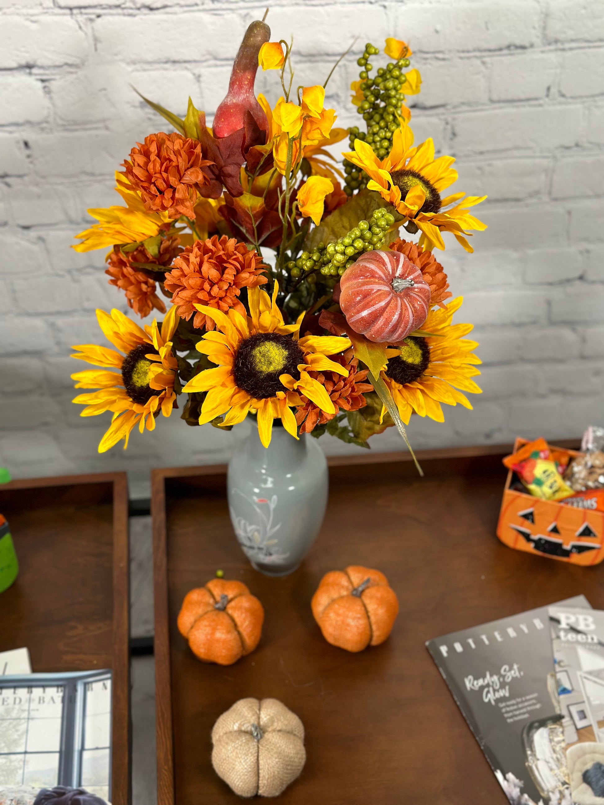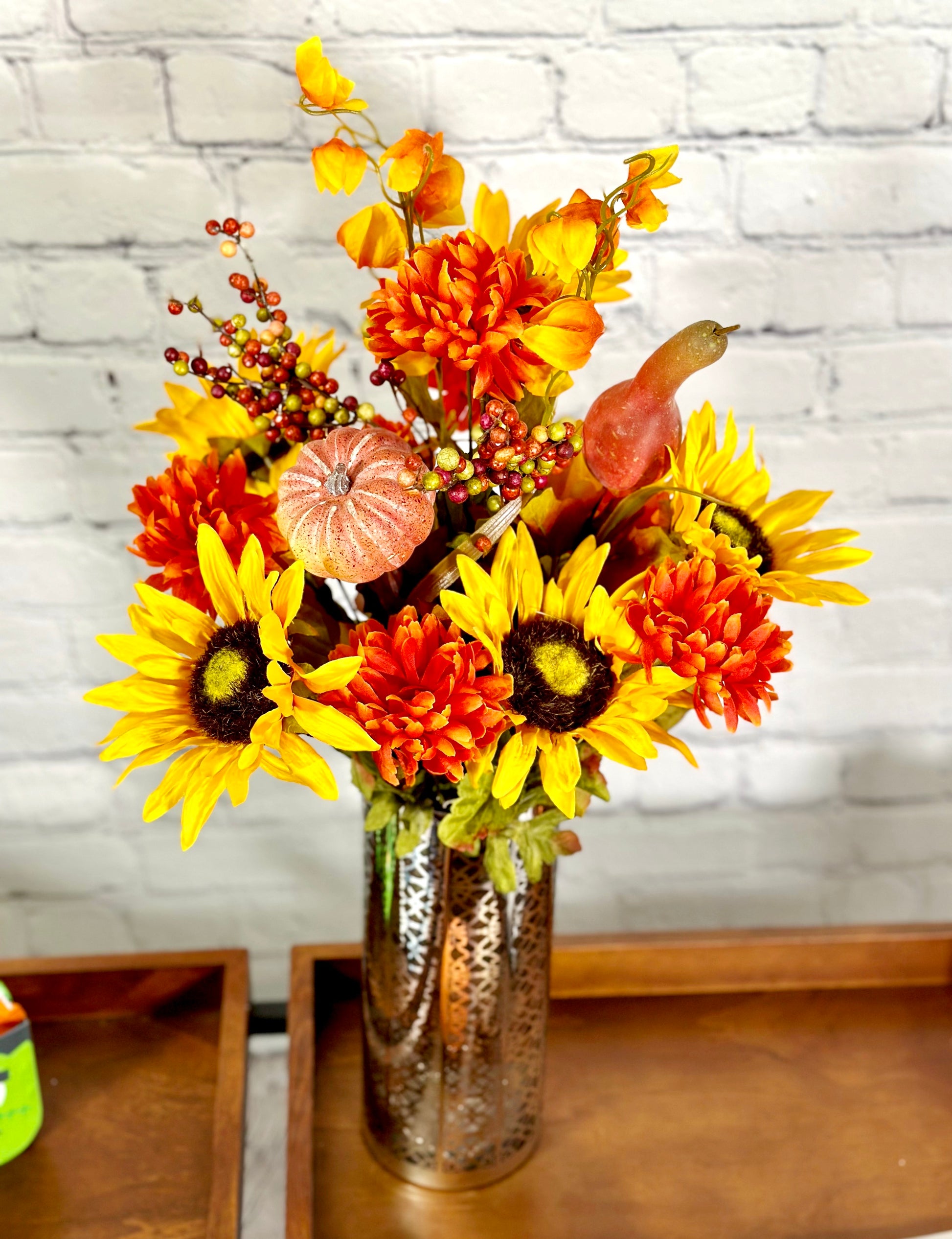 - [OCCASION] This fake fall flowers pumpkin is great fall decor outdoor porch, weddings, centerpiece decorations, fall-themed parties, Fall floral arrangements, DIY projects, fall centerpieces arrangements, or as a gift.