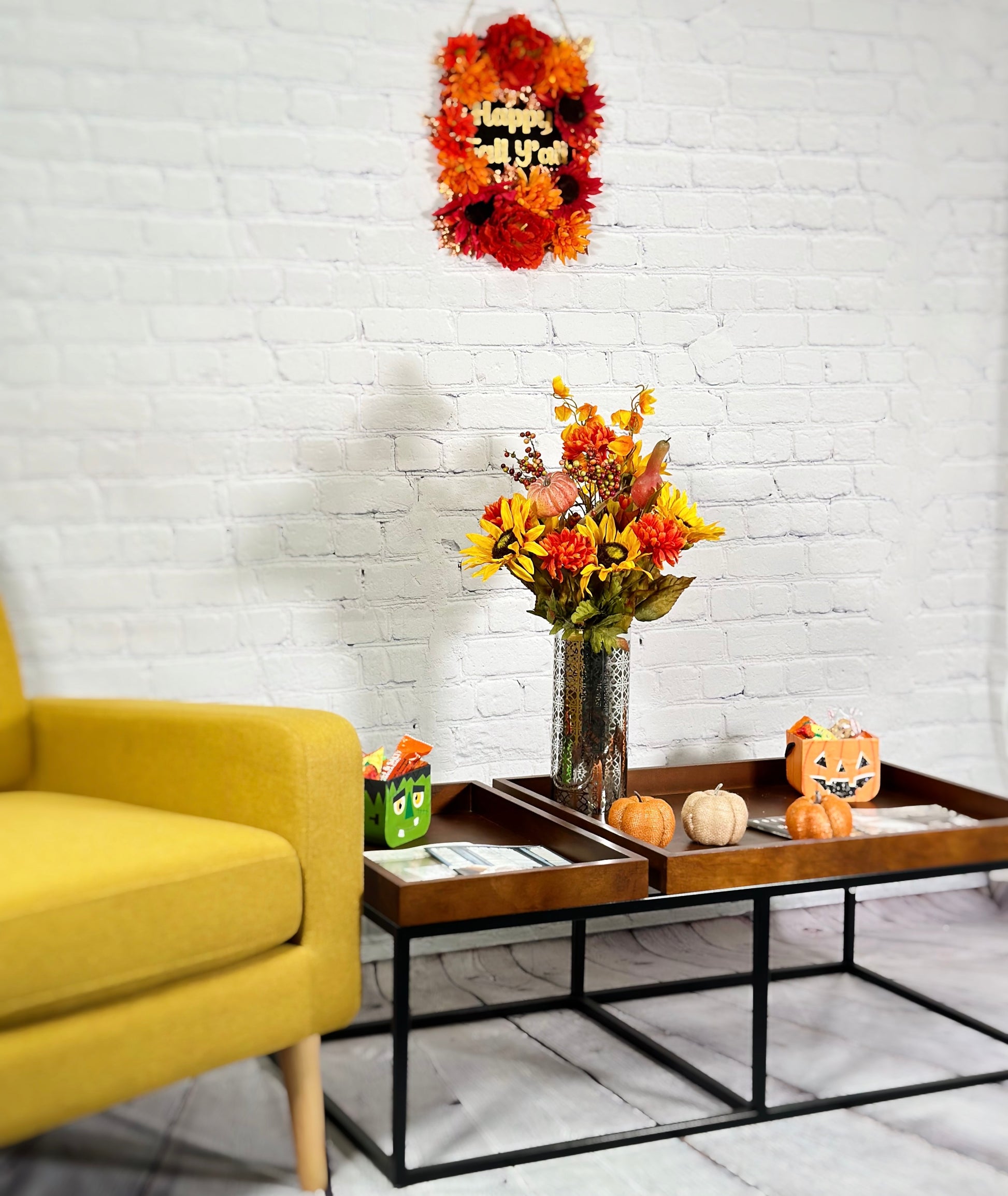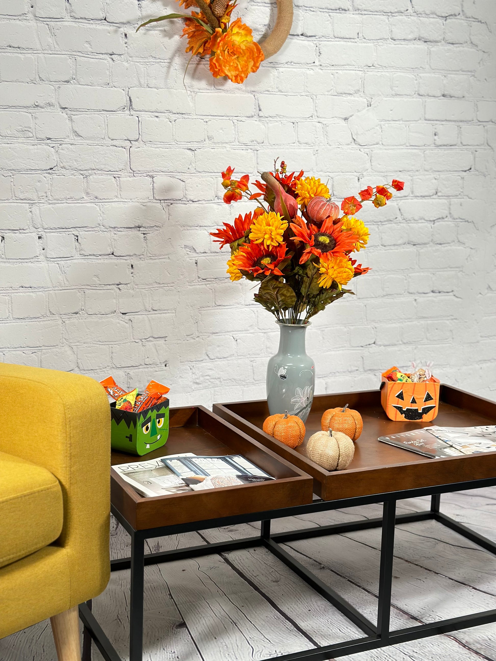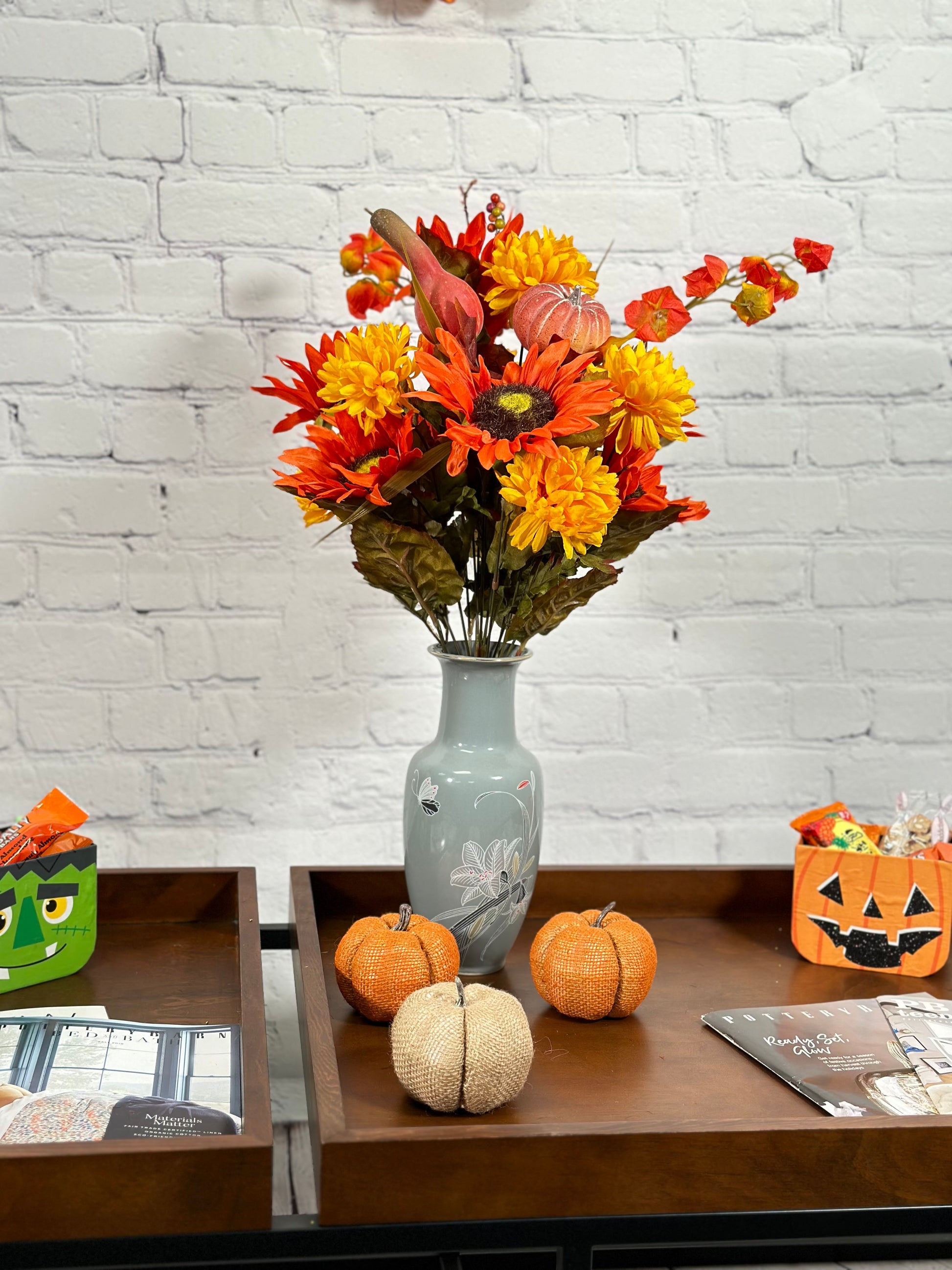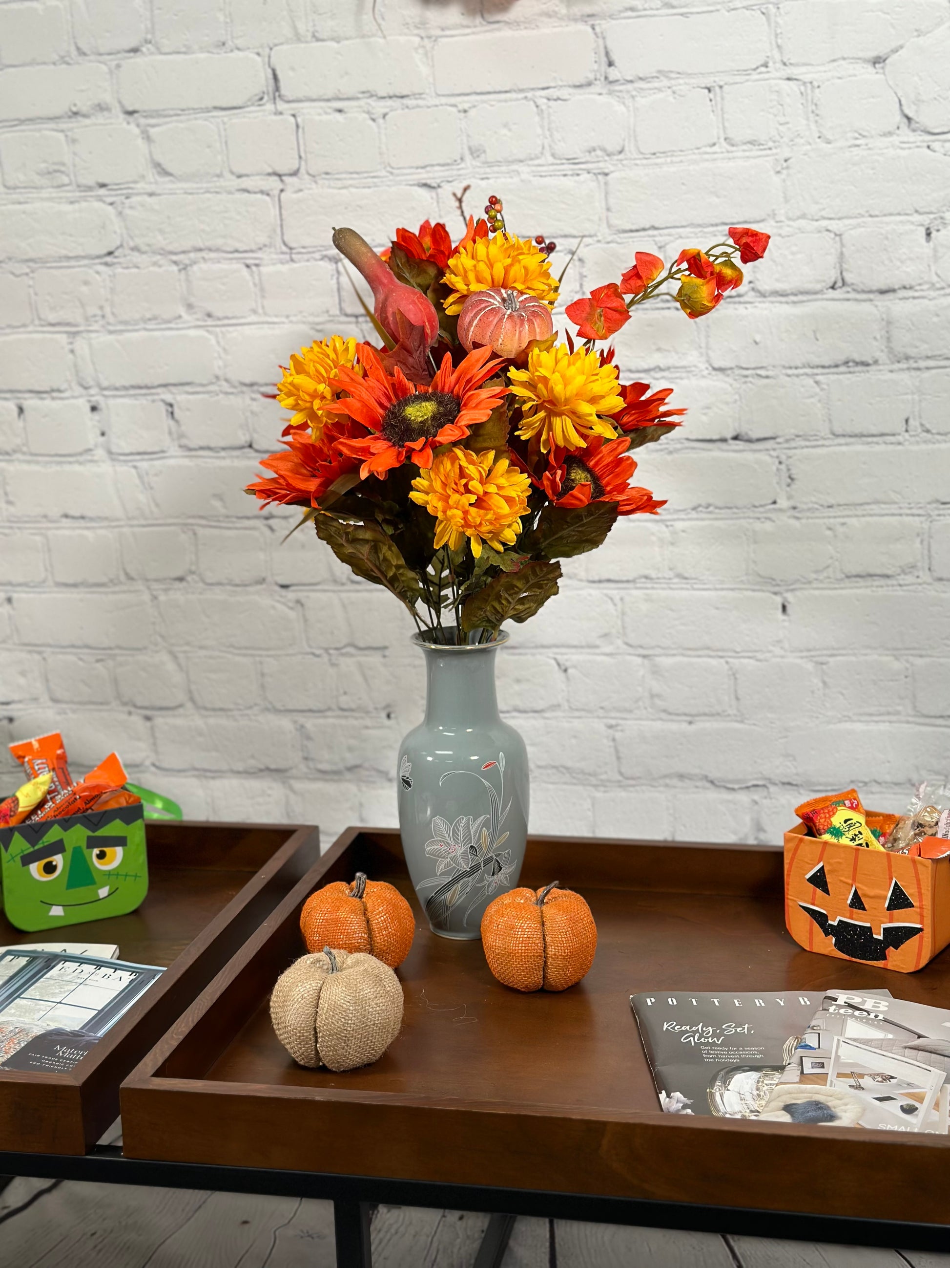 - [OCCASION] This fake fall flowers pumpkin is great fall decor outdoor porch, weddings, centerpiece decorations, fall-themed parties, Fall floral arrangements, DIY projects, fall centerpieces arrangements, or as a gift.