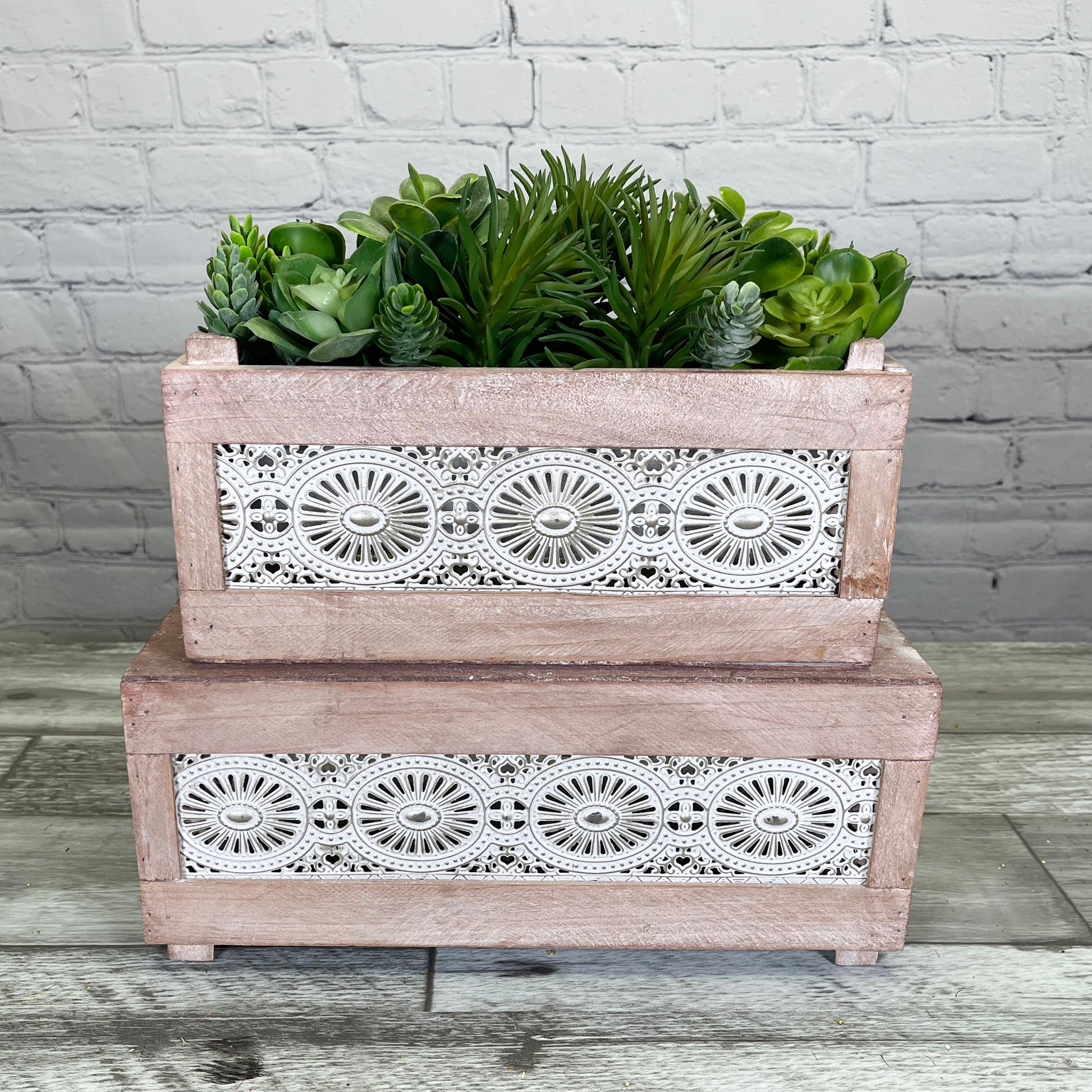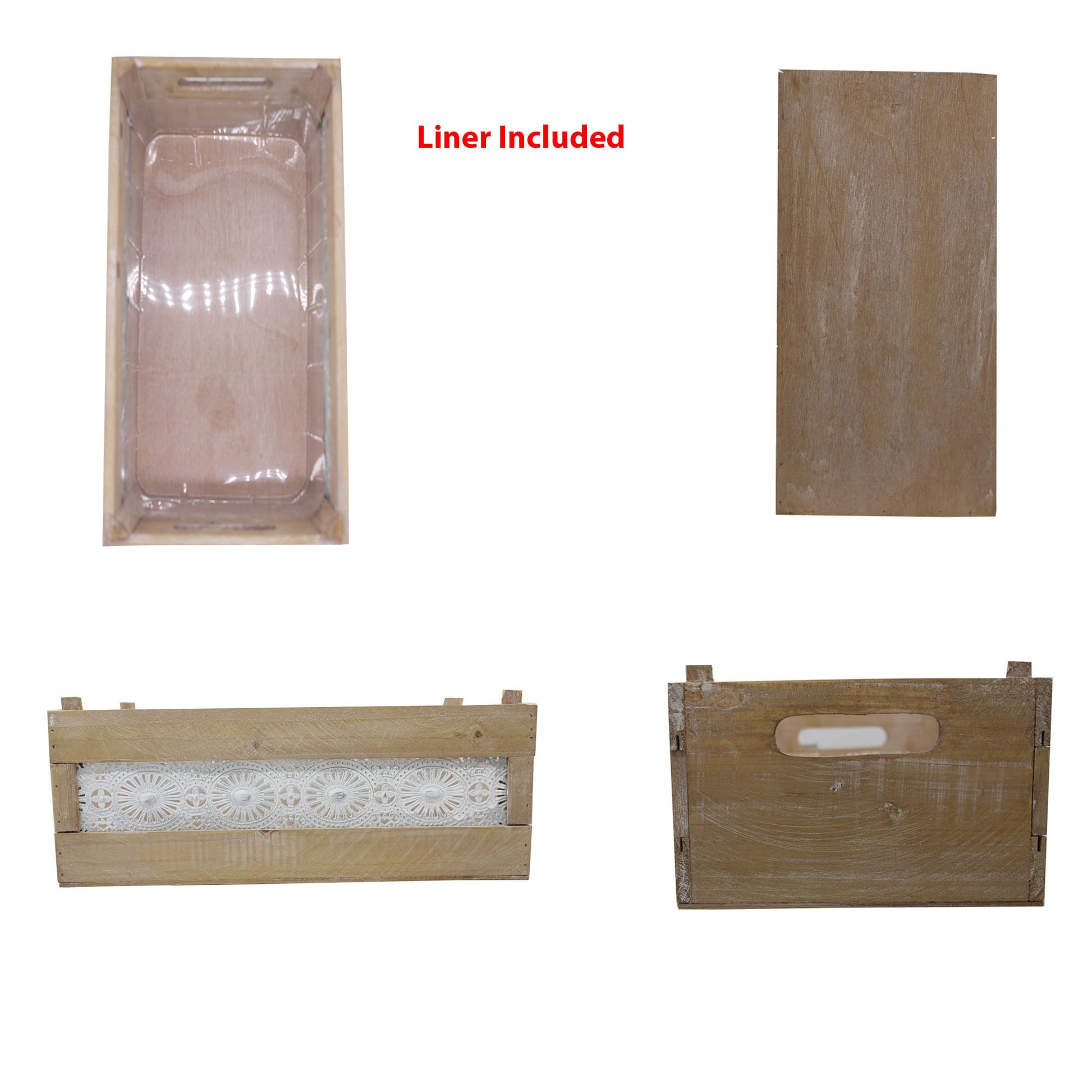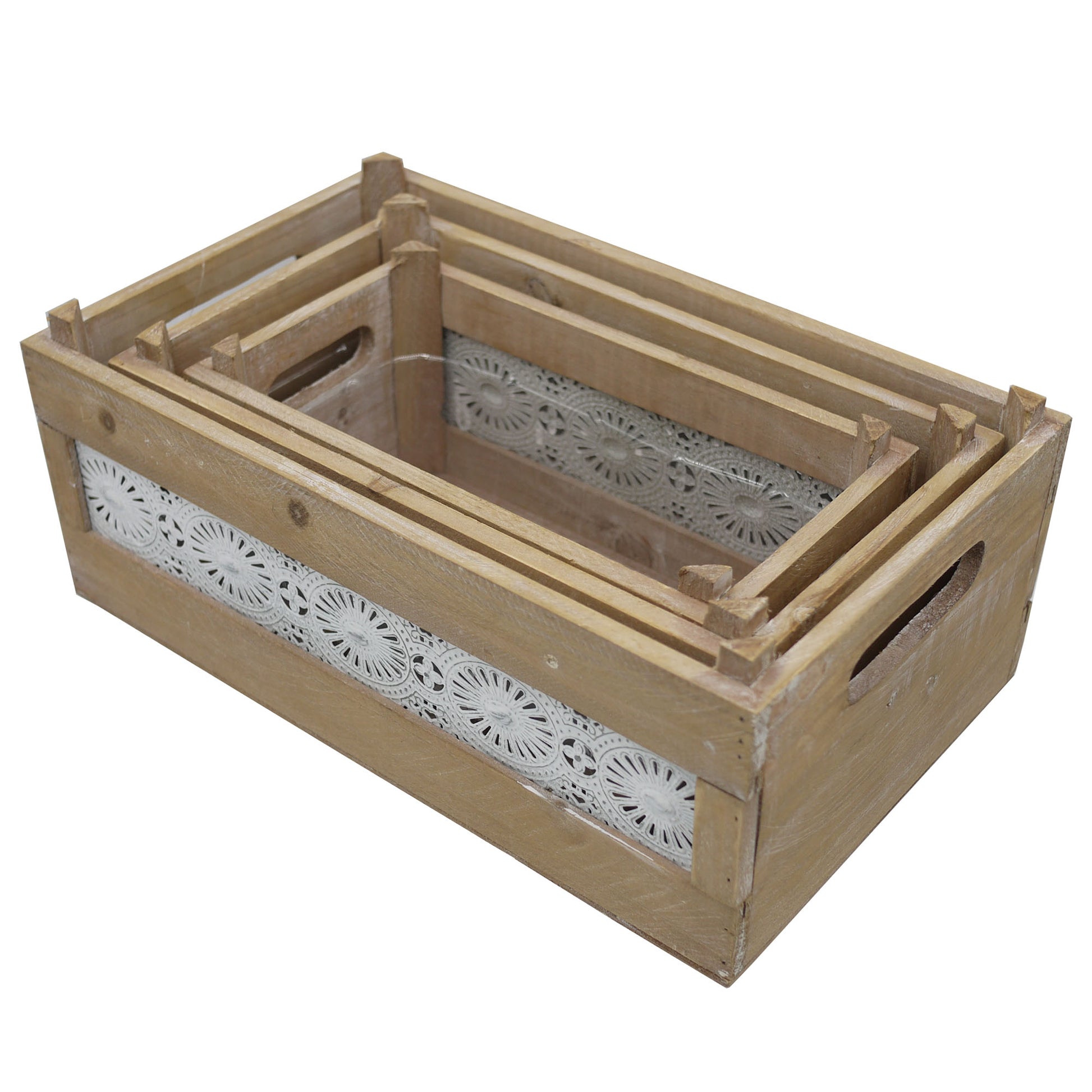 ABN5E128-NTRL Wood Crates with Decorative Lace Panels Set of 2