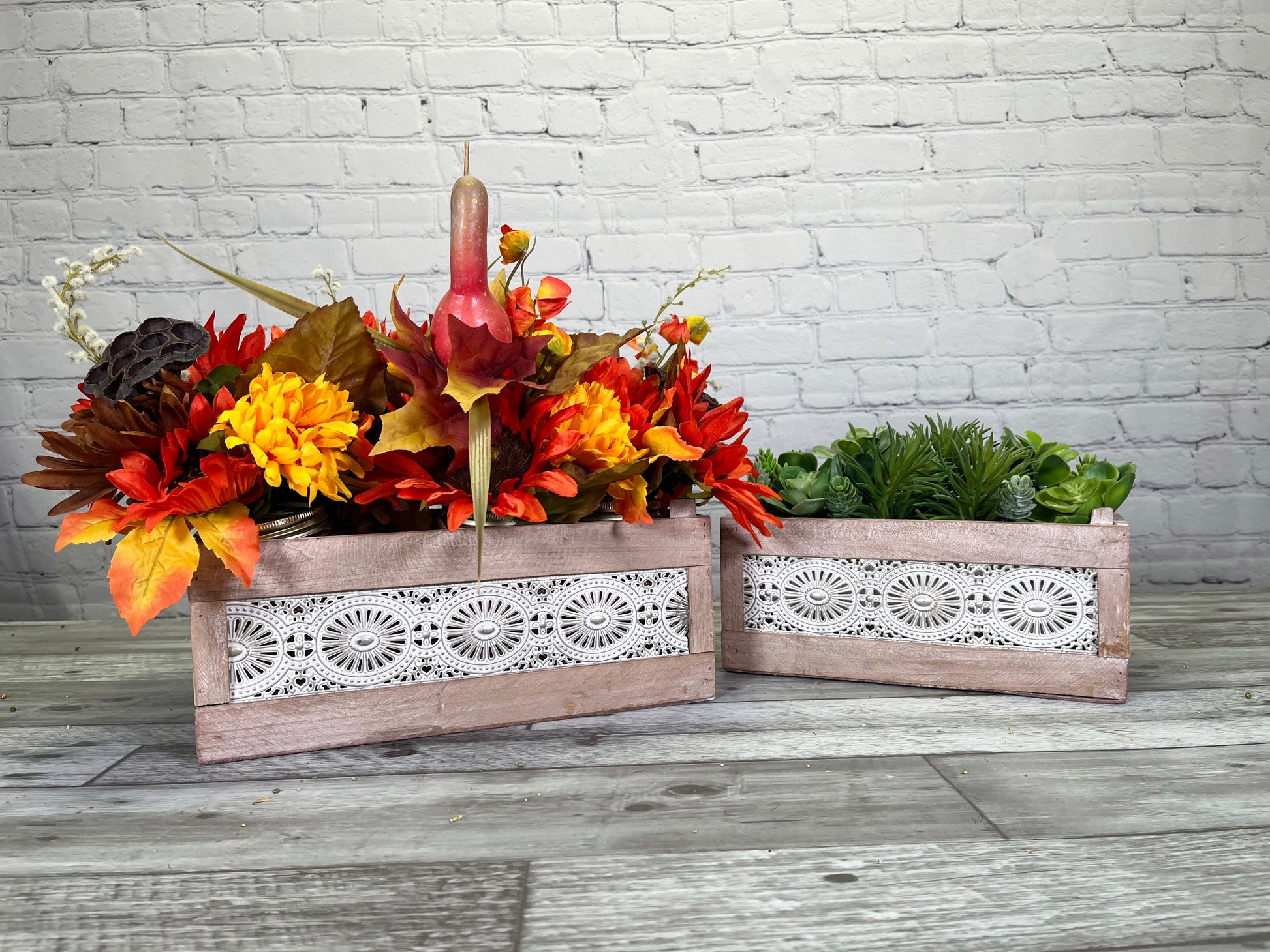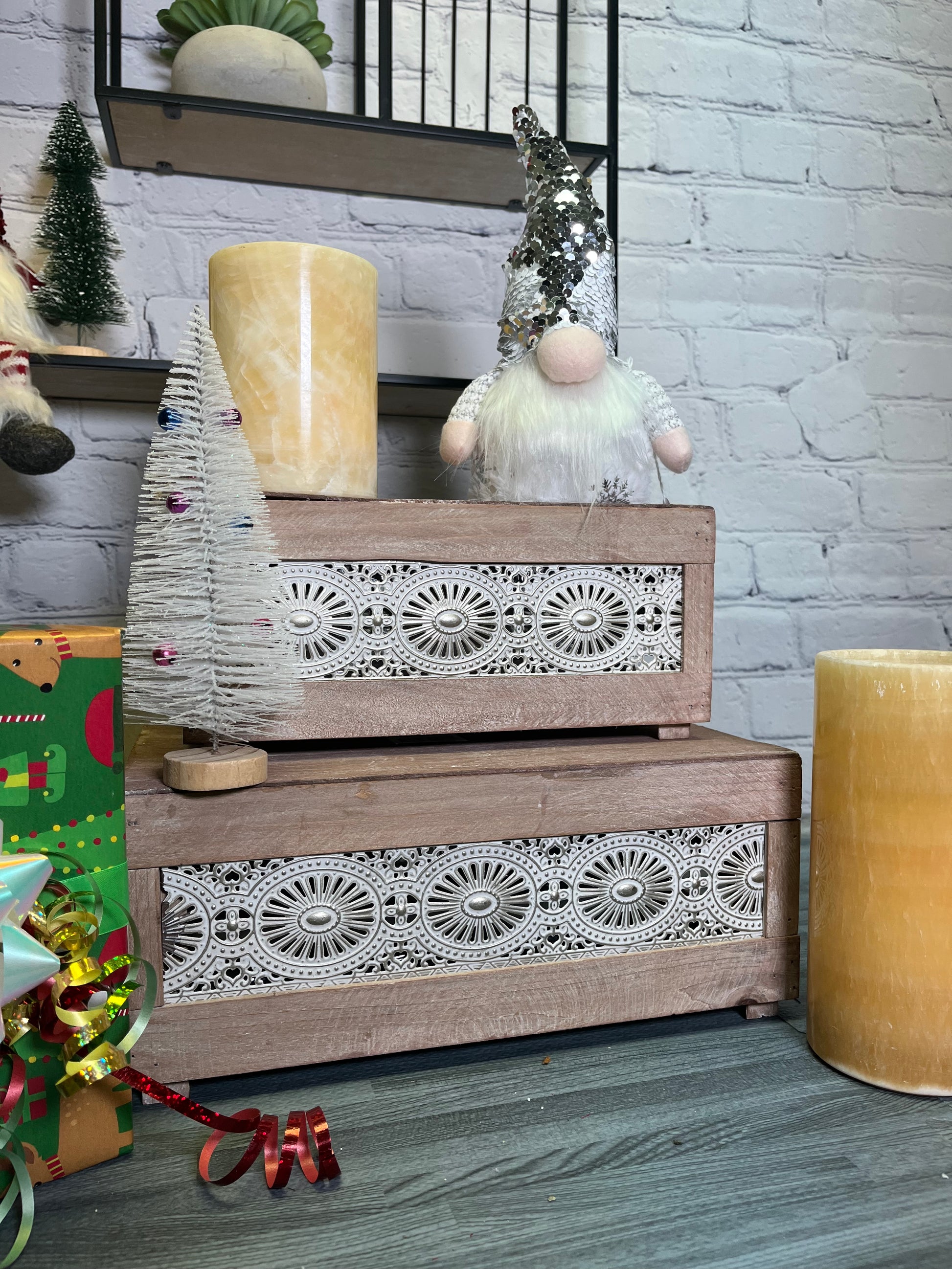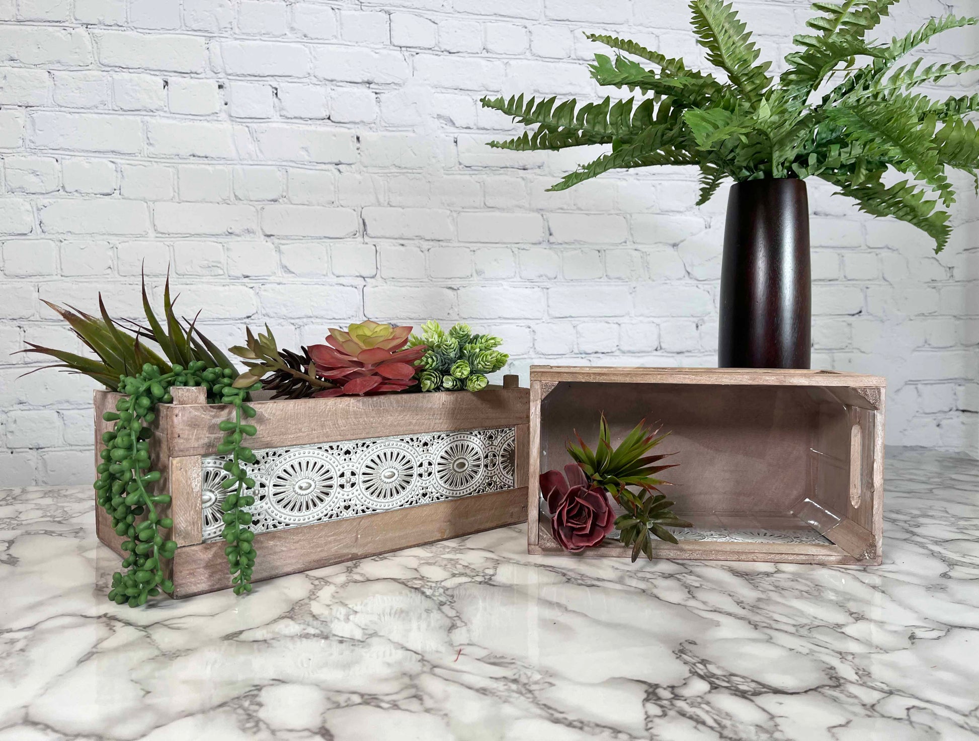 ABN5E128-NTRL Wood Crates with Decorative Lace Panels Set of 2