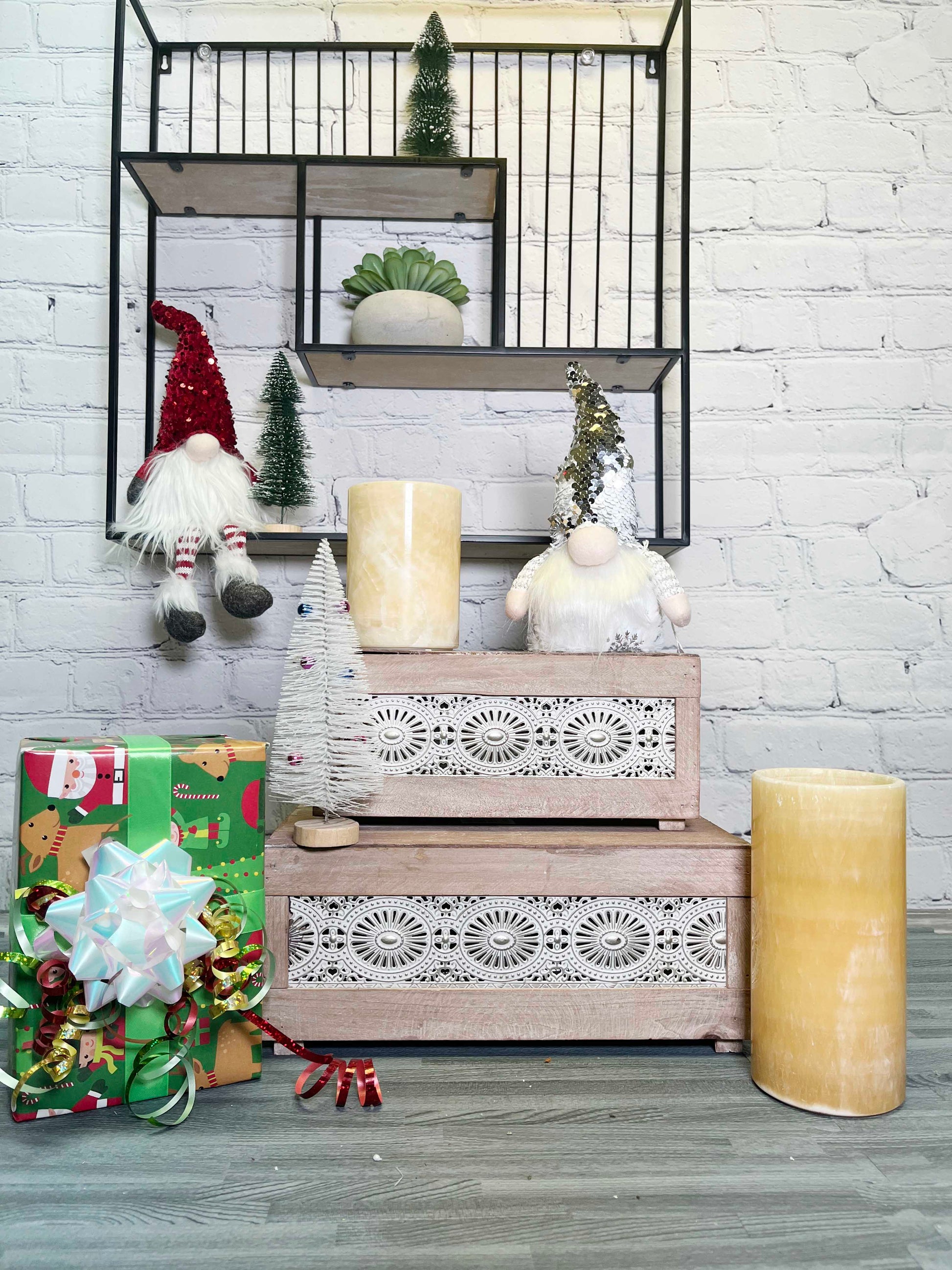 - Quantity: Set of 2 wood nesting boxes with decorative panels included.