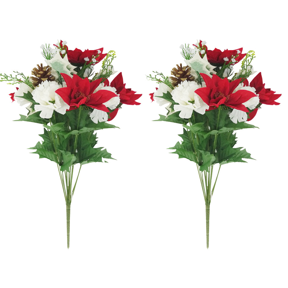 - [Easy] These Christmas artificial flowers decorations arrive compressed. With minimal effort primping the flowers, they'll look beautiful as Christmas flowers for vase. Not just for your home, use as Christmas cemetery flowers for decoration.