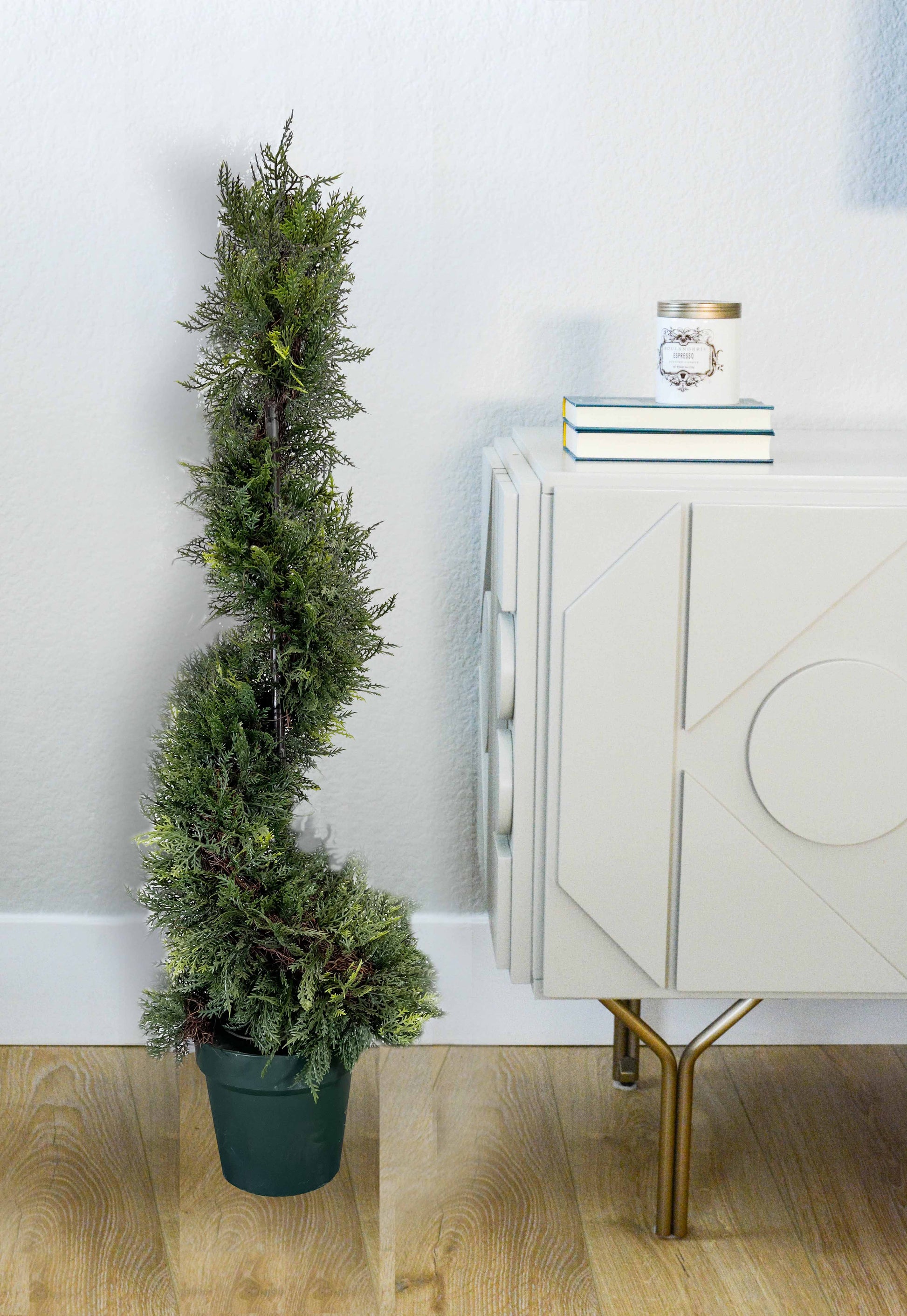 Admired by Nature is one of the leading specialist in the design and supply of artificial trees plants and flowers We supply to trade shows interior designers etc It brings home nature to your home and office in a very unique way All products are eco friendly and need minimum care. Features. Bring the beautiful of gardening to home and office or simply place it outdoor to enhance feel and look of your home and office entrance. This Cypress Leave Spiral Topiary requires no trimming for all year long. Primping required to match on the image shown.